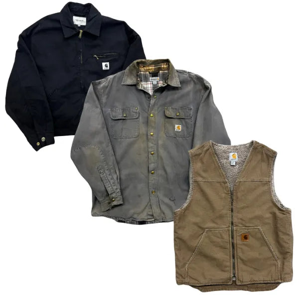 Our Carhartt jacket bundle features vests, thick sweatshirts, thick shirts and jackets from Carhartt. These come in a range of styles for women and men, and vary in grading from clean grade A, to more worn such as grade C.