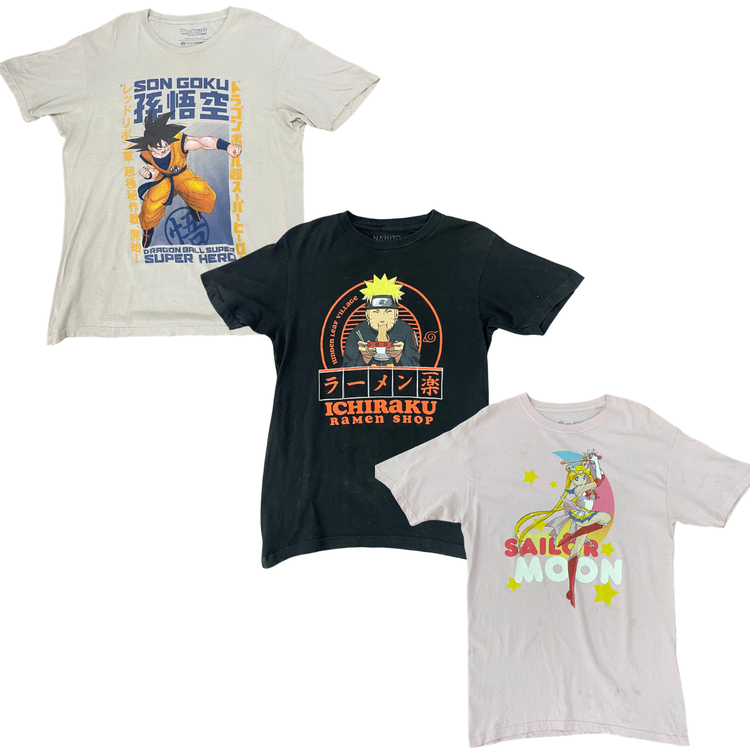Our Anime T-Shirts bundle offers a mixed assortment of vibrant, fan-favorite designs — expect short sleeves, long sleeves, and various styles featuring popular anime characters and themes, perfect for resale or collection.