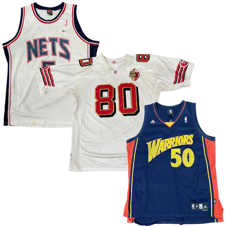 Our NFL Style Jerseys bundle (Grade B) includes jersyes with NFL team logos and designs in various sizes, colours, and styles. As well as NFL teams, you can expect different sports teams for different leagues, and jerseys in the same style. Expect minor signs of wear, small marks, or imperfections typical of Grade B items — perfect for vintage lovers or resellers looking for authentic sportswear pieces with character.
