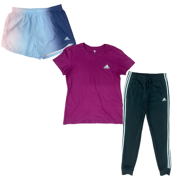 The Mix Adidas Ladies bundle offers ladies clothes such as leggings, sport tops and hoodies (among other things) from Adidas. These come in various sizes, styles and colours.