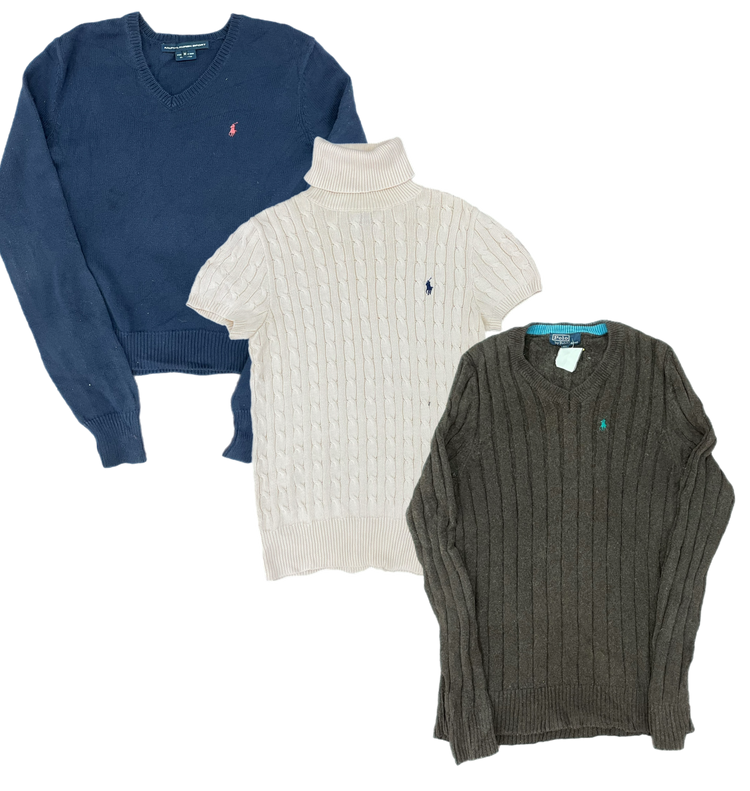 Our Polo Ladies Sweater bundle features a variety of stylish sweaters in different sizes, colours, and designs. Comfortable, versatile, and timeless — perfect for adding a classic, vintage-inspired touch to any wardrobe.